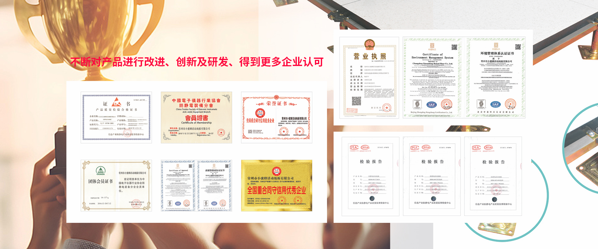 公司引进整套自动流水生产线所生产的全钢抗静电地板采用优质钢板经拉伸成型,点焊,静电喷涂,内腔填充发泡水泥填料养护一定周期后贴面而成。横梁、支架为镀锌及镀铝合金结构,高度长度可调。